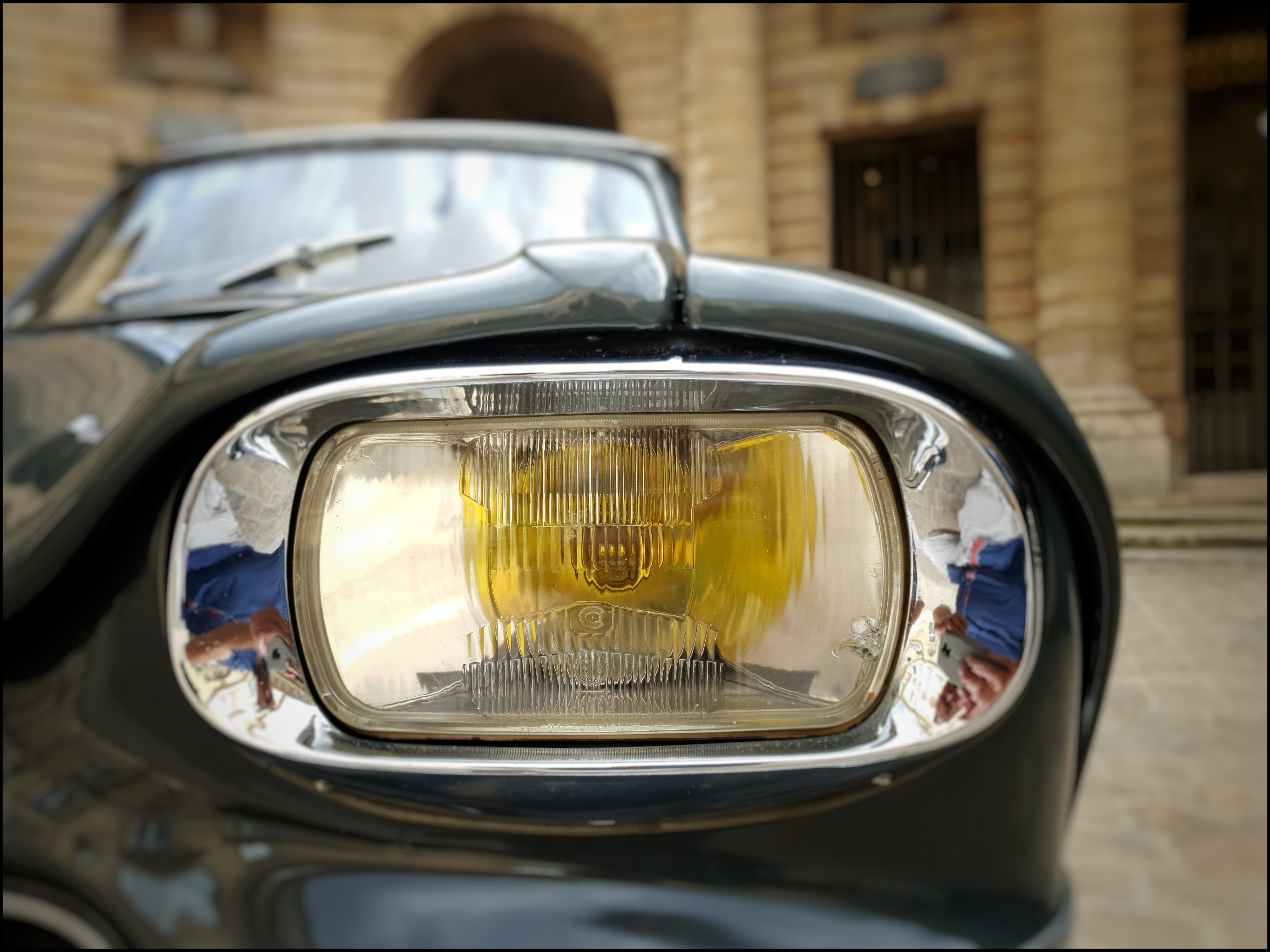 Alors que sept photographes exposent leur regard sur les Citroën d’hier et d’aujourd’hui, et que l’une d’entre eux se détache nettement (Mouna Karray, cf l’article précédent), alors que dehors, dans la cour, les concepteurs de l’exposition The World inspired by Citroën ont installé six classiques de la marque autour d’un débonnaire C5 Aircross qui semble un peu se demander ce qu’il fait là (une idée au hasard : de la promotion ?), que croyez-vous que fit votre serviteur ? Il dégaina son smartphone, parce qu’il avait laissé son APN à la maison, et il tourna un bon moment autour de la deuche, de l’Ami 6, de la DS, de la CX, de la GSA et de la BX alignées sous la belle lumière de la fin d’aprés-midi reflétée par les façades chaudes de l’institution.