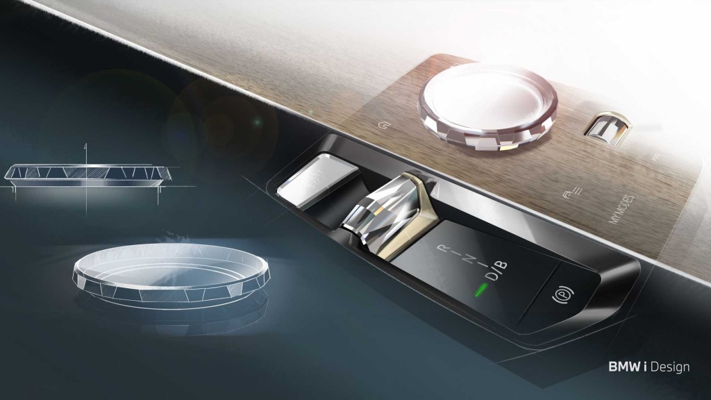 Ainsi, même si la surface continue fait au premier abord penser à Mercedes, ce cintrage de l’écran suffit à démarquer cet intérieur de celui du concurrent direct. Mais un autre détail permet de l’en distinguer plus radicalement encore : la mise en scène de la fixation de cette surface sur le tableau de bord lui-même. Car si, chez Mercedes, la surface plane semble posée sur la planche de bord, ici, elle est suspendue à un système d’équerres design qui surélèvent le tout, maintenant la surface d’écrans en suspension. Le seul point de contact, c’est la colonne de direction, mais caché derrière le volant, on ne le voit quasiment pas. A strictement parler, on n’a pas souvent vu une telle mise en scène de l’écran. De mémoire, le seul véhicule qui a tenté quelque chose dans ce genre, c’est le concept E-Tense de DS. Sur celui-ci, l’écran central est en effet maintenu à distance de la planche de bord par une structure porteuse qui simule un matériau qui aurait été distendu par une force de traction essayant d’arracher l’écran au mobilier pour le tourner, en force, vers le conducteur. Regarde-t-on, depuis le bureau de style BMW, ce qui se fait chez DS ? Ce serait un peu présomptueux de l’affirmer. Mais observons tout de même ceci : la structure principale de la planche de bord des DS7 et DS9, c’est une surface inclinée, proche de la verticale, qui fait face aux passagers, à laquelle est arrimée un écran qui ne s’y intègre pas pleinement. On pourrait dire la même chose de la forme générale du meuble BMW qui fait office de planche de bord. Encore une fois, le niveau de raffinement n’est pas le même, mais tout se passe comme si les marques françaises étaient une sorte de source à laquelle on puisse venir puiser des idées qu’on pourra, mieux qu’elles, mener à leur plein accomplissement.