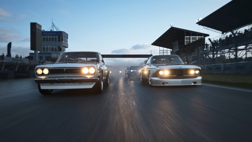 C’est là leur magie, mais aussi leur limite. Ca ne fume pas, ça ne pue pas l’huile ou le caoutchouc cramé, ça de vous reste pas sur les bras sous la forme d’épave quand vous l’avez envoyée dans le décor. Et pourtant, ça suffit à susciter chez le joueur une émotion qui a quelque chose à voir avec la vraie chose. Parce que ça fonctionne comme le cinéma : Hitchcock réussit bien à nous faire vivre un meurtre dans une douche sans jamais nous montrer un quelconque couteau se plantant dans un quelconque corps. Le jeu vidéo peut s’inspirer de cette économie de moyens : ce n’est pas la peine d’en rajouter pour que la sensation naisse au cœur des neurones et s’infiltre dans le corps tout entier. Ca ne fait pas tout, mais ça le fait, aussi. Le film d’ouverture de Gran Turismo 7 ne s’y trompe pas, d’ailleurs, rendant hommage à plusieurs reprise au septième art, son prédécesseur.