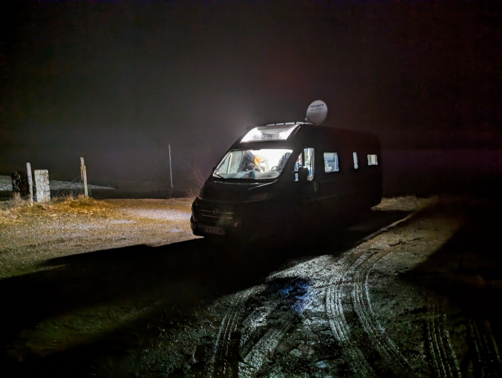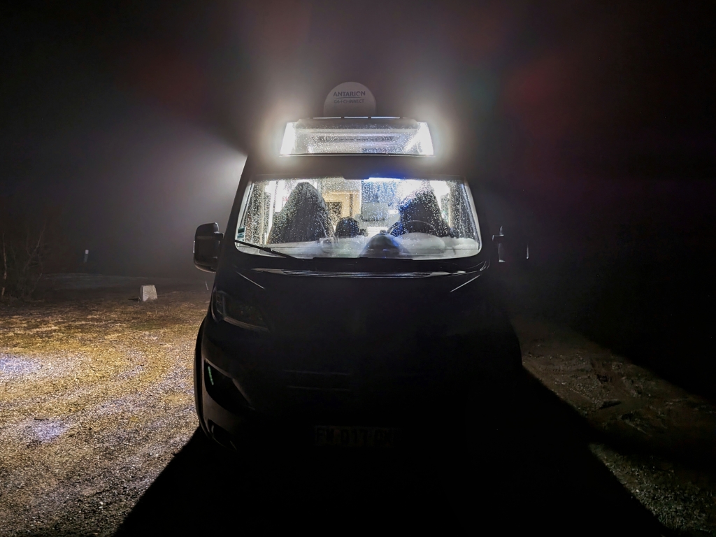 La photo du van dans le noir fait un peu « Rencontre du 3e type » (sachant que vous êtes déjà 2 :D) !