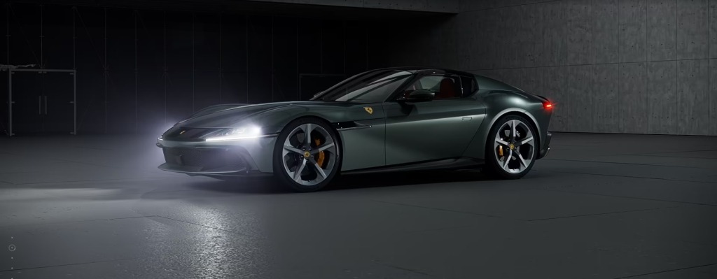 L’arrière ne doit rien au lointain passé, ni aux signes distinctifs patrimoniaux de la marque. Le thème esthétique que développe ce postérieur, c’est celui qui avait été inauguré sur la Ferrari SF90 Stradale. Comme si le cheval cabré fusionnait en un seul et même corps le passé et le présent, le purisme de la motorisation hyper classique et la nécessaire hybridation de la mécanique à venir, une façon de dire qu’en réalité il n’y a pas de rupture dans le fil conducteur de la gamme, que tout ça n’est qu’une seule et même histoire et que, de la même façon que Ferrari s’est jadis adapté aux règlementations commerciales locales et, plus encore, aux règles parfois changeantes du sport automobile, elle continue à faire ce qu’elle sait faire, le mieux possible, dans le cadre de ce que le marché et l’esprit du temps permettent de faire. Et ce que la 12 cilindri nous dit, c’est qu’il reste un espace pour l’atmosphérique, une place pour que survive une musique mécanique faite de résonnances prenant leur source dans les harmoniques les plus subtiles, les grimpées symphoniques vers les sommets les plus aigus et les descentes d’organe vers les profondeurs infrabasses. Ne serait-ce que pour un temps, rien de tout ça n’est encore perdu. Et puisque cette voiture fait d’ores et déjà partie de l’histoire, ce que Ferrari présente en 2024, c’est une mémoire vive de l’automobile telle qu’elle a existé, un témoignage vivant et vibrant d’une ère dont le futur est incertain, mais dont on peut palper, des yeux et des oreilles et, pour les plus chanceux, par tous les autres sens, la présence, au présent.